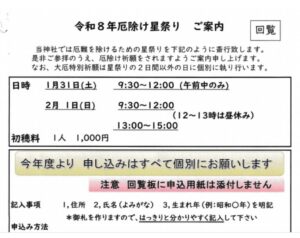 再掲示<回覧 高田若宮八幡社>令和8年厄除け星祭り案内New!!