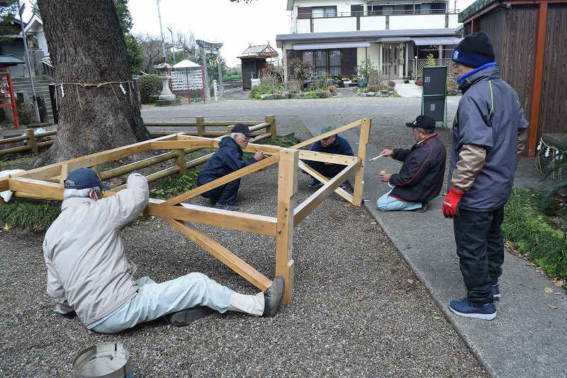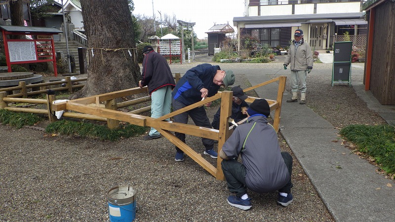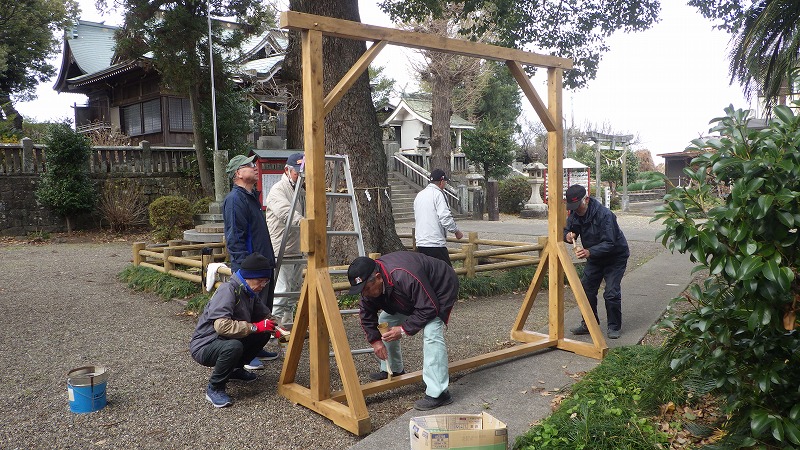 茅の輪の塗装作業 (令和7年1月17日)