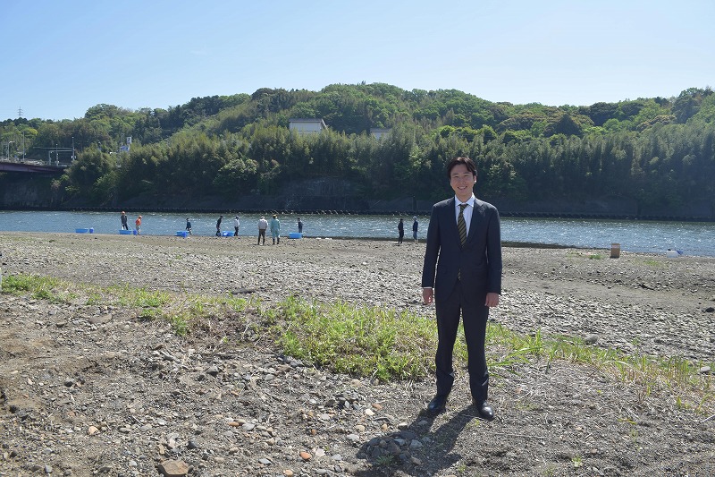 衛藤博昭元県議もアユ、ウナギの放流体験を見学に来られていました。写真で見るとなかなかの男前です。