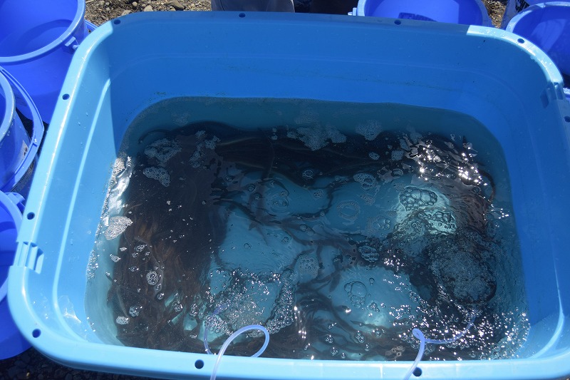 今年のウナギは250匹です。そのウナギを事前にバケツに分けて入れていきます。
