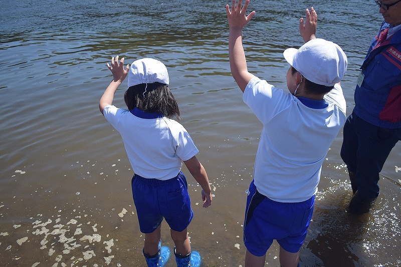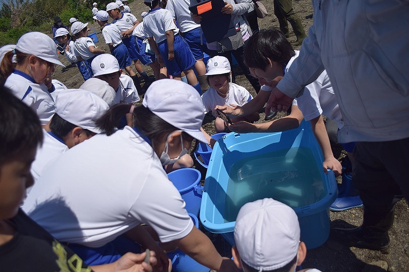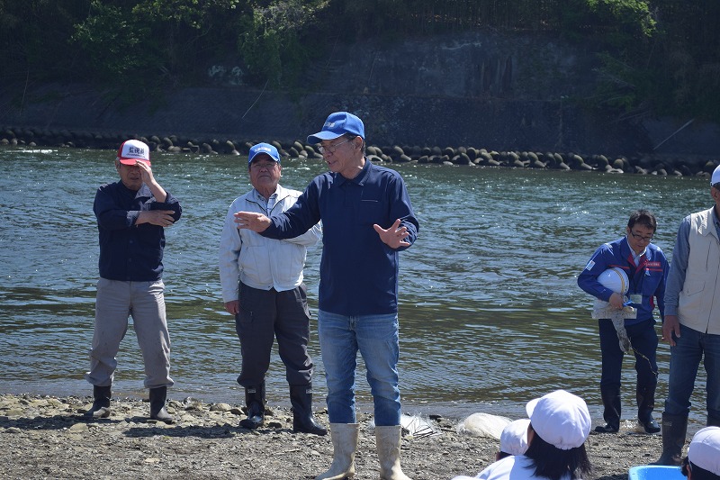 という話は面白い話でした。そういわれると、今年の放流は手づかみより網を使って放流する子供も多かったような気がしました。