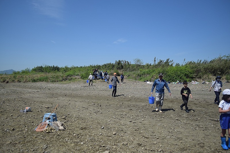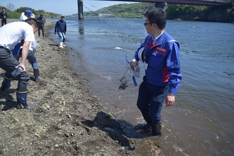 国交省の石橋所長も川から何か収穫です。川にあったゴミを拾い上げたようです。さすが、国交省の職員です。