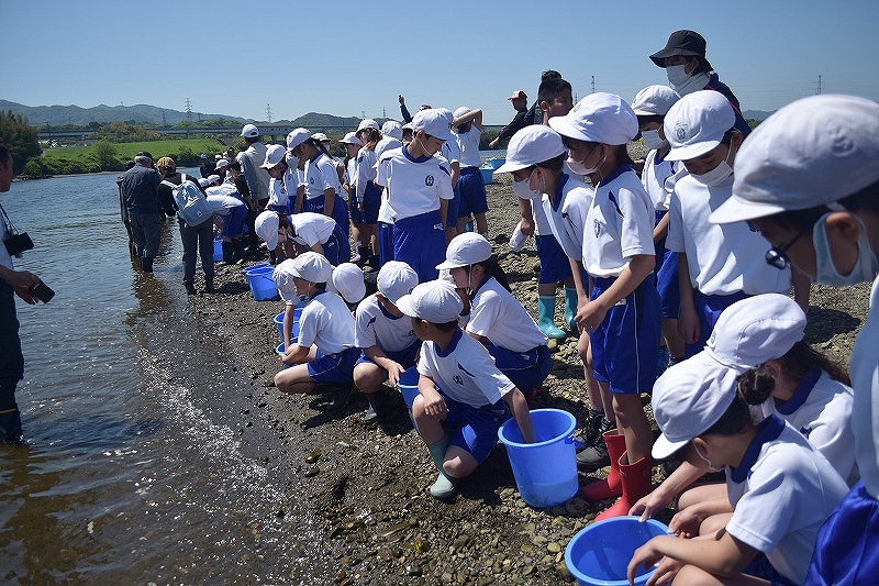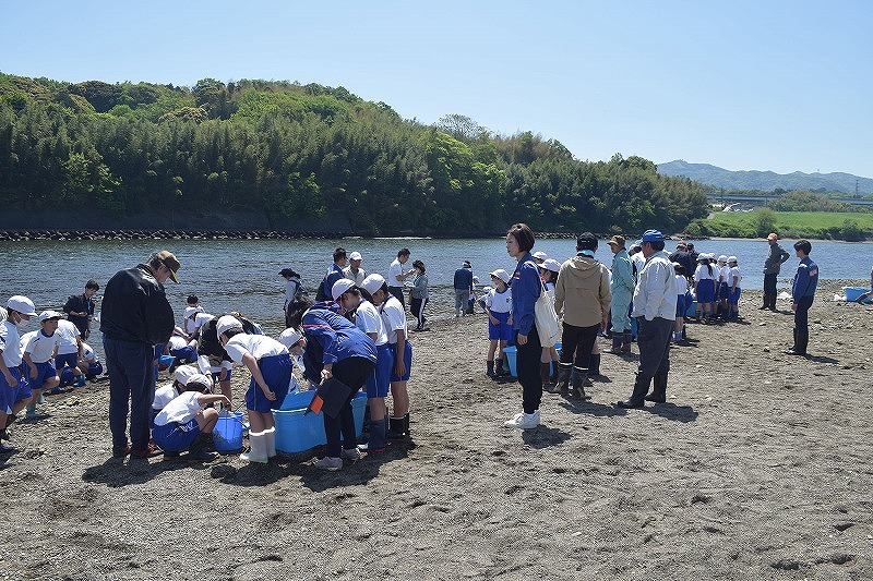 放流稚魚については自治会の知り合いが佐伯にいるとのことでそこから仕入れることにしました。また、生態や河川についての学習については国土交通省や漁協が協力してくれました。