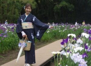 <大分を歩く 神楽女湖>梅雨空の中、神楽女湖(かぐらめこ)の花しょうぶは満開