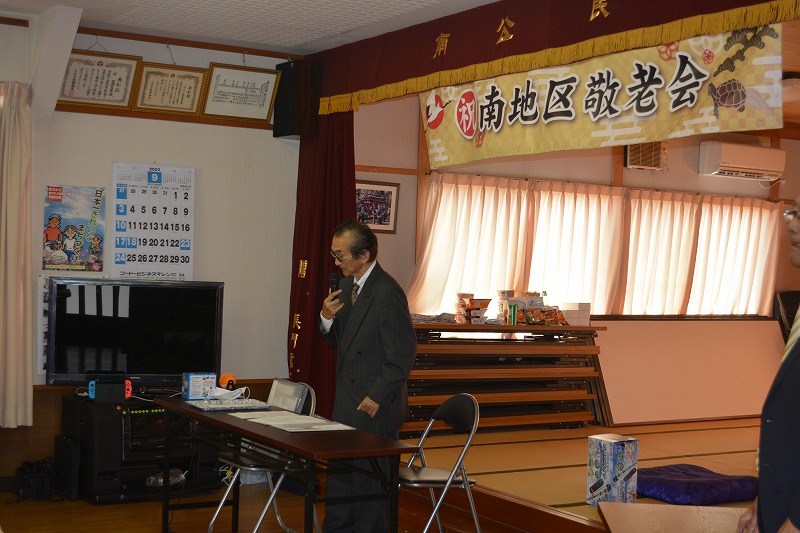 南の敬老会は落語や漫才の人を呼びみんなで笑いあう敬老会でした。締めにはビンゴ大会やカラオケを行い内容のある敬老会を開催していました。