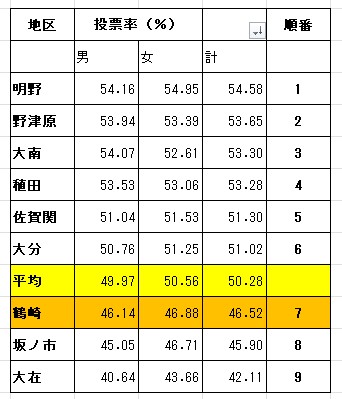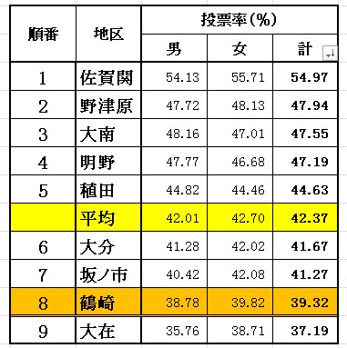 鶴﨑地区の投票率が低いのはなぜなのか、ちょっと考えてみる必要があるのではないでしょうか。