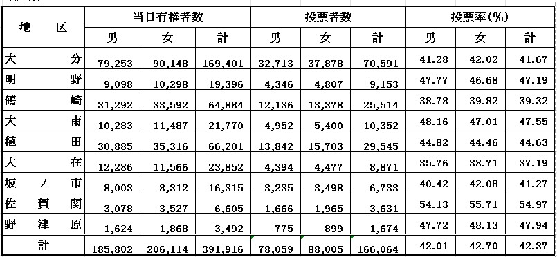 大分市市議会議員の選挙とあまり変わらないようです。今回の選挙がどうなるか気になります。