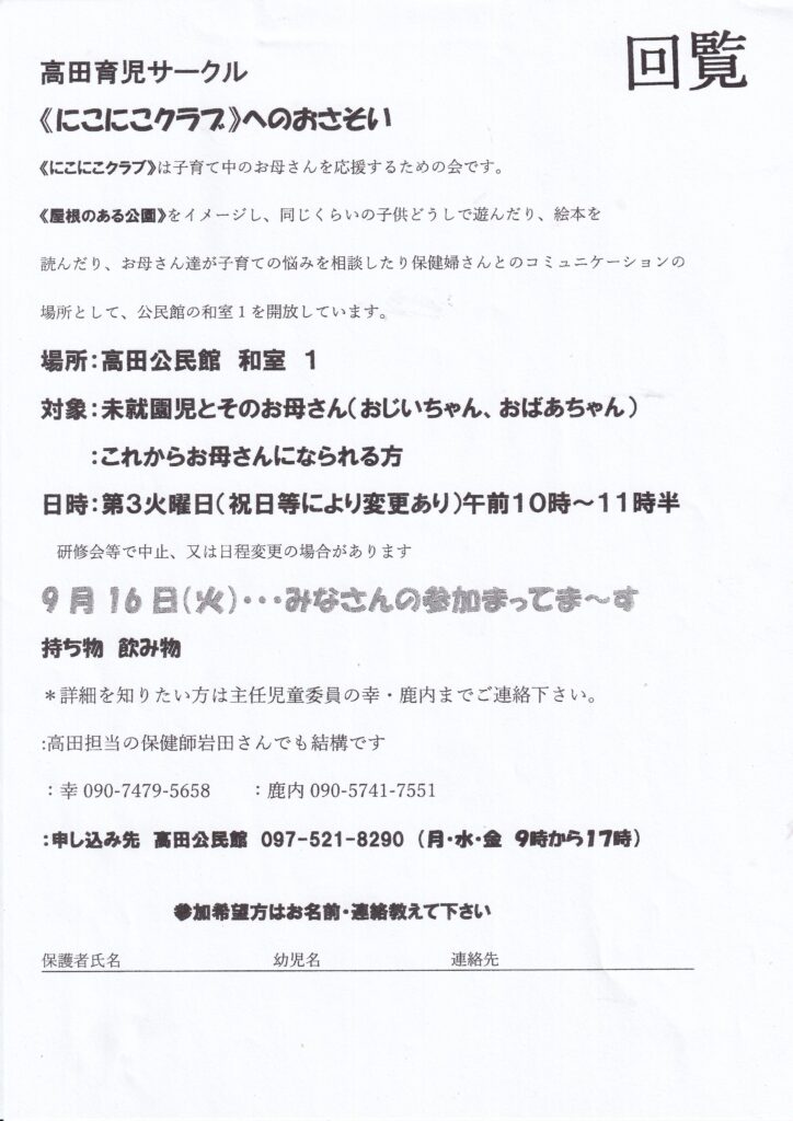 3. <回覧 高田育児サークル> 《にこにこクラブ》へのおさそい