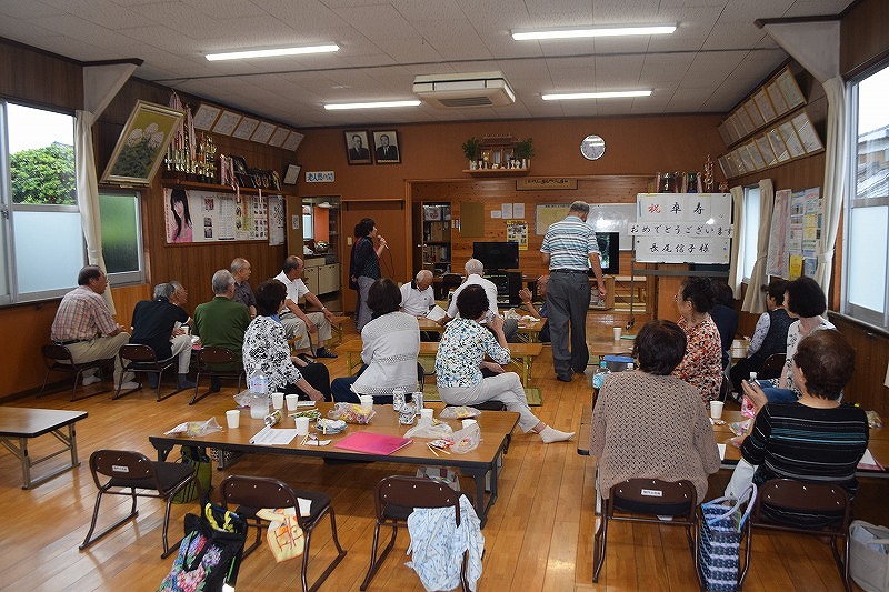 高田長寿会第三部会(会長 播磨宏和)では会員が90歳になった時に卒寿のお祝いをしています。今回は昭和10年9月18日生まれの長尾信子さんのお祝いです。
