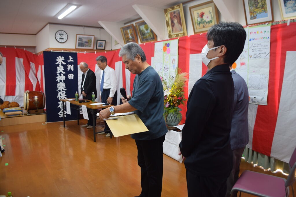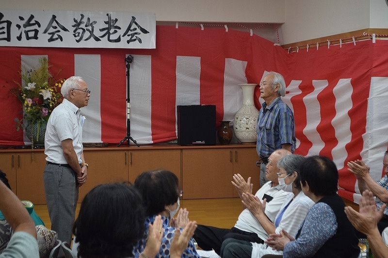 敬老者代表として久保さんが高窪自治会長にお礼のことばです。