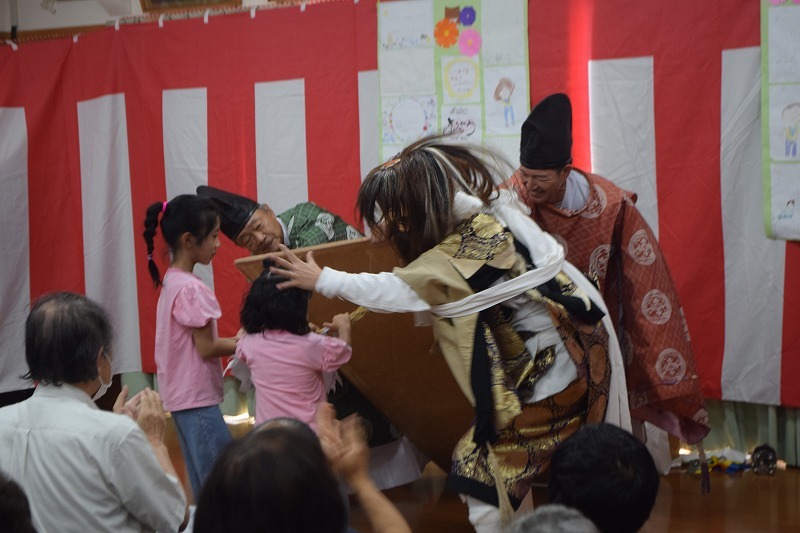 ただ、見入っていて、子供たちが参加して天岩戸を引っ張る場面や、天岩戸が開く瞬間を動画に収め損ねてしまいました。