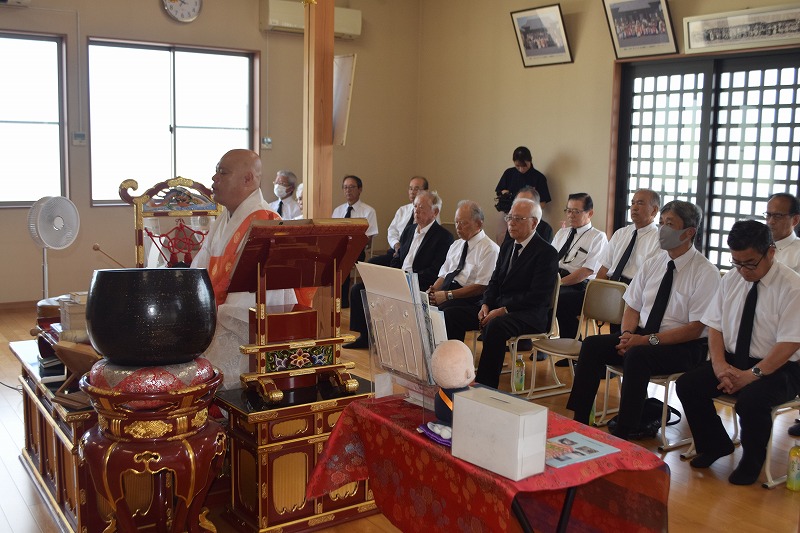 水難者慰霊祭が9月1日に一乗寺で行われ、得丸鶴瀬自治会長からその報告がありました。