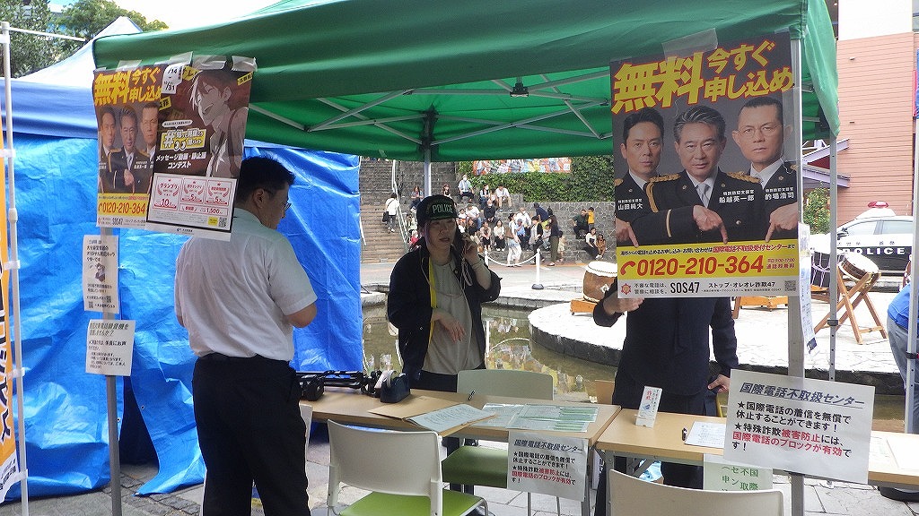 特殊詐欺撲滅コーナーでは、運のよいことに詐欺対策電話録音機が12台まで無料の申請にぎりぎり間に合いました。(私事では宇佐1300年祭に行った時には有料駐車場やお茶会の野点(のだて)が直前で終わるということが続いたのですが。)
