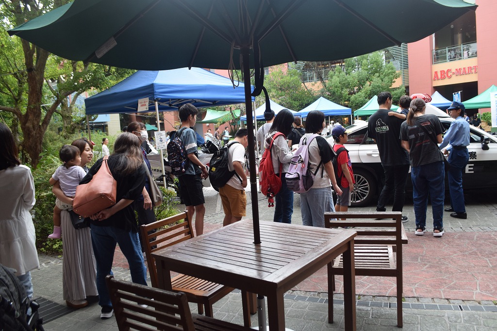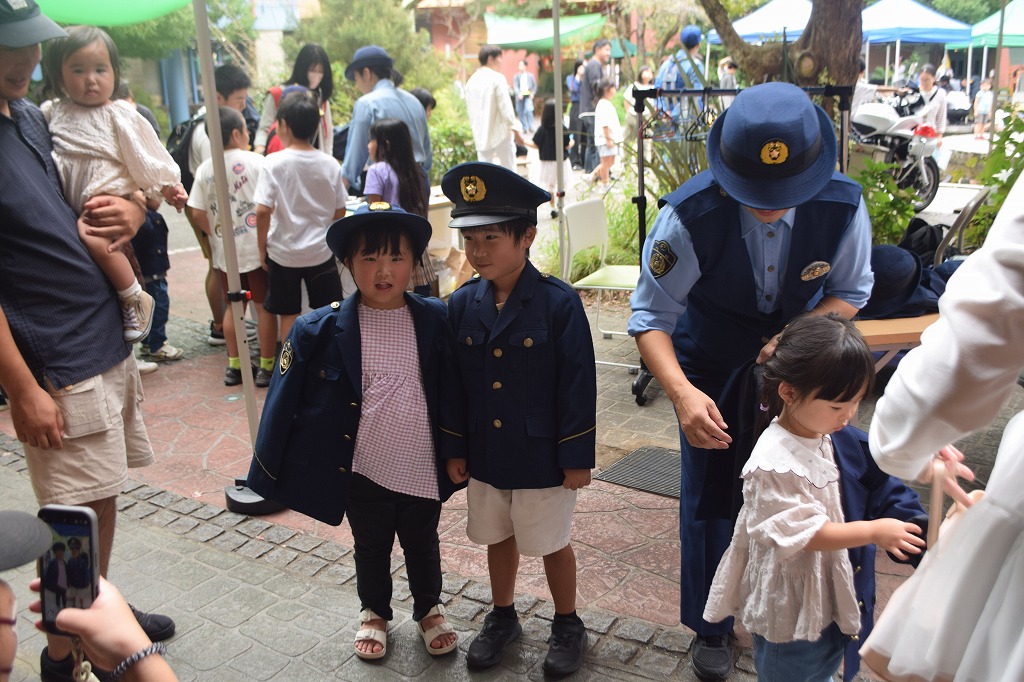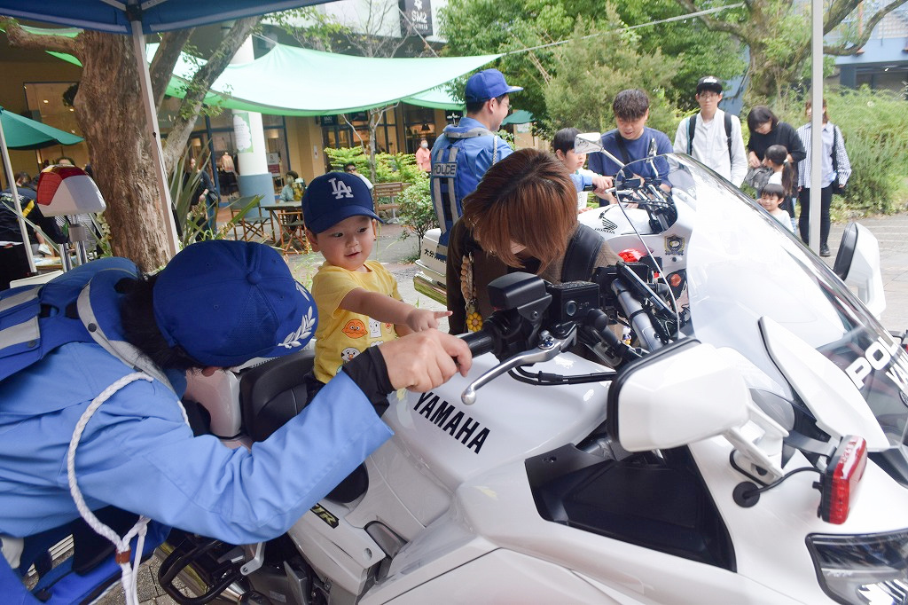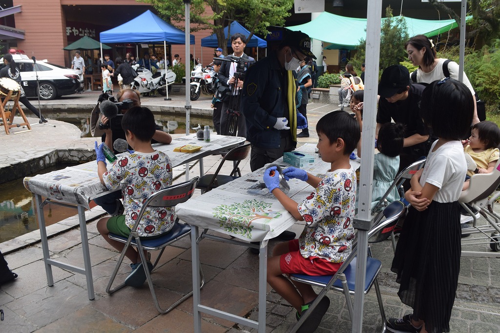 また、白バイやパトーカーに試乗できるコーナーや空き缶にある指紋を見つける鑑識コーナー等には子供たちの長い列ができていました。