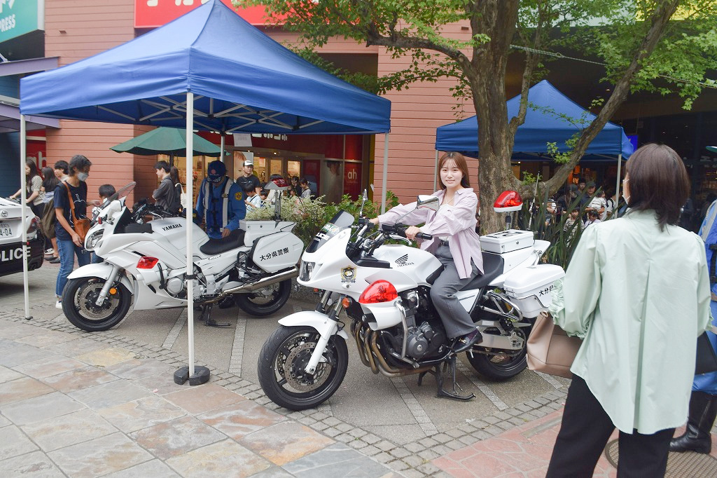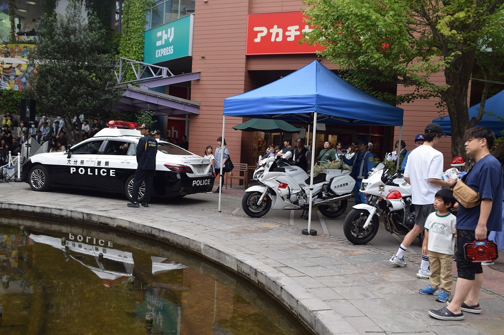 その一環として大分東署による「おおいたひがしポリスフェスタ」がパークプレイス大分の噴水広場で開催されました。