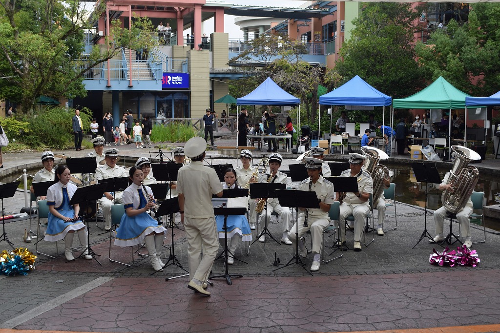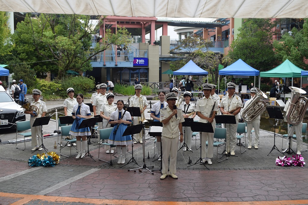勤務をしながら練習をしているそうです。でもプロの音楽隊です。聞きほれていました。曲目は銀河鉄道999や名探偵コナン、踊るポンポコリンなど子どもの喜びそうな曲が多く、子供達も大きな声で歌っていました。