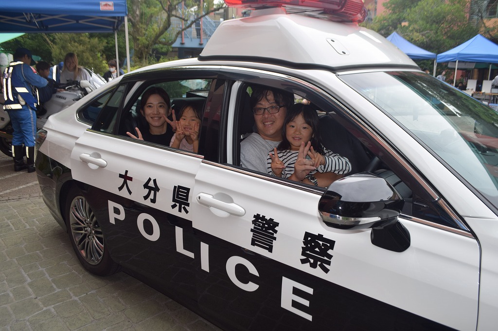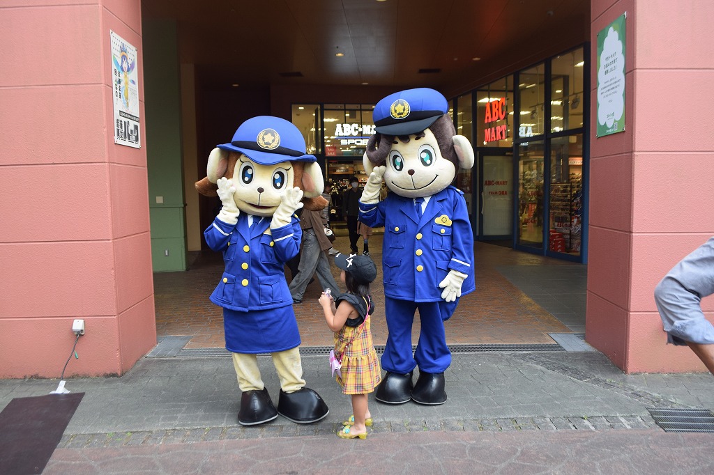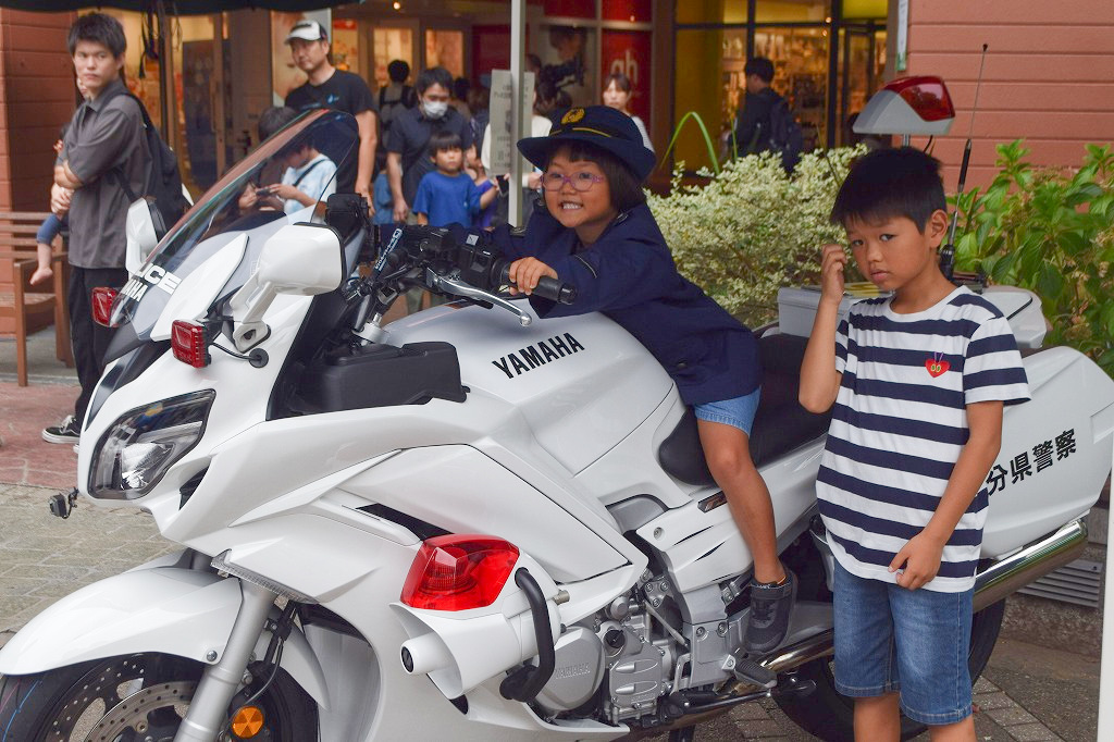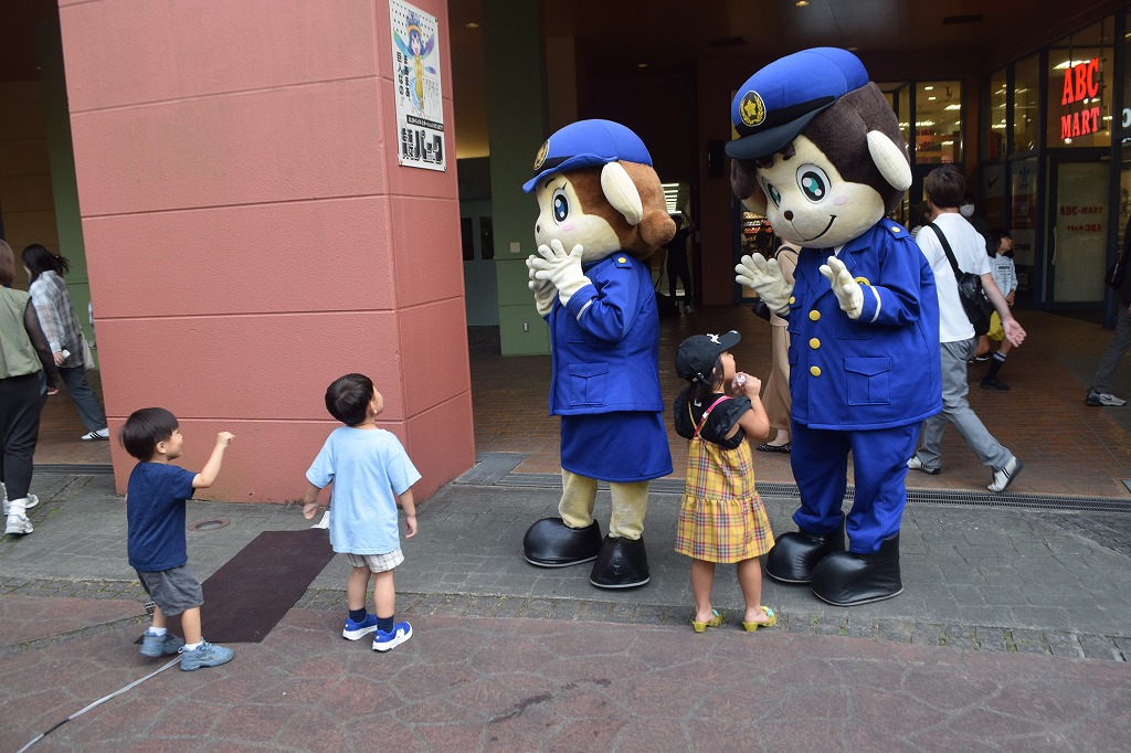 会場では大分県警のマスコットキャラクター「ピンキー」「パンキー」が子供たちに大人気でした。