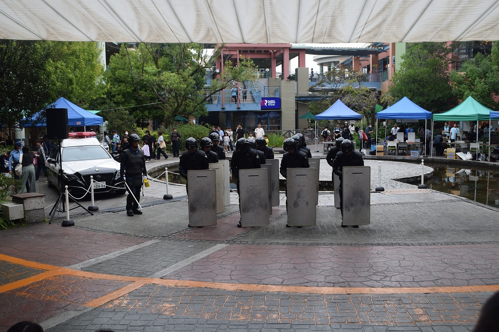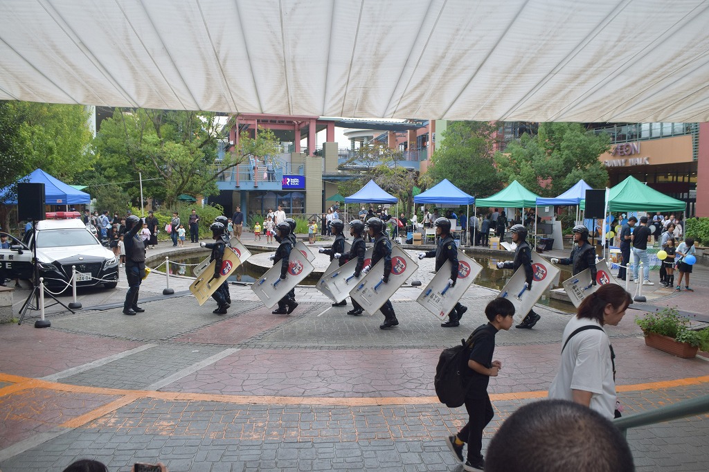 さすが県警が力を入れて行うイベントで、県警音楽隊演奏、機動隊盾操法、特殊詐欺に関する寸劇などどれも見ごたえのあるものでした。