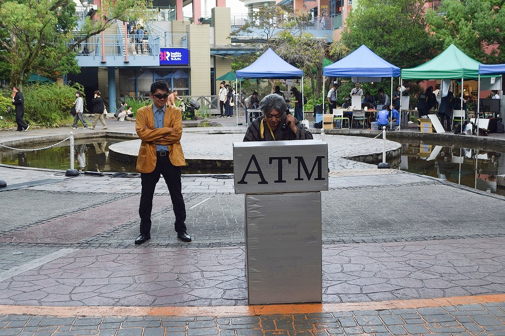 警察から電話があり、「あなたのカードが悪用されています。保釈料を払えば逮捕はされません。」と言われたおじいちゃんが、使い道がわからないATMに誘導されます。しかし、おかしいと気づいたおばあちゃんが警察に電話をして、ざまされた振り作戦でATMの前で逮捕をする。という寸劇です。