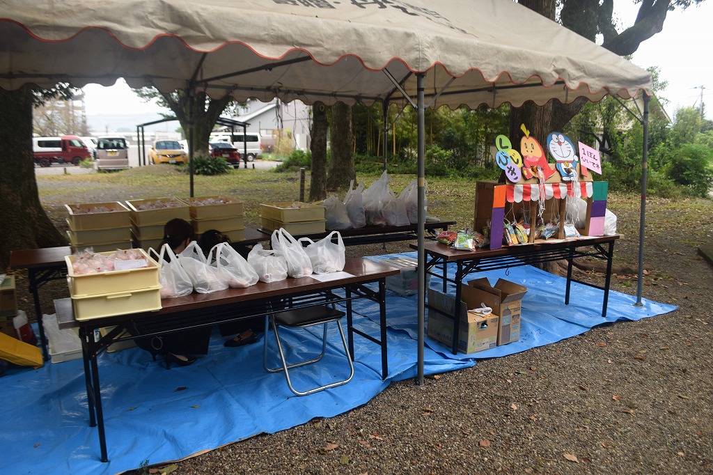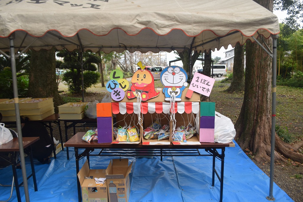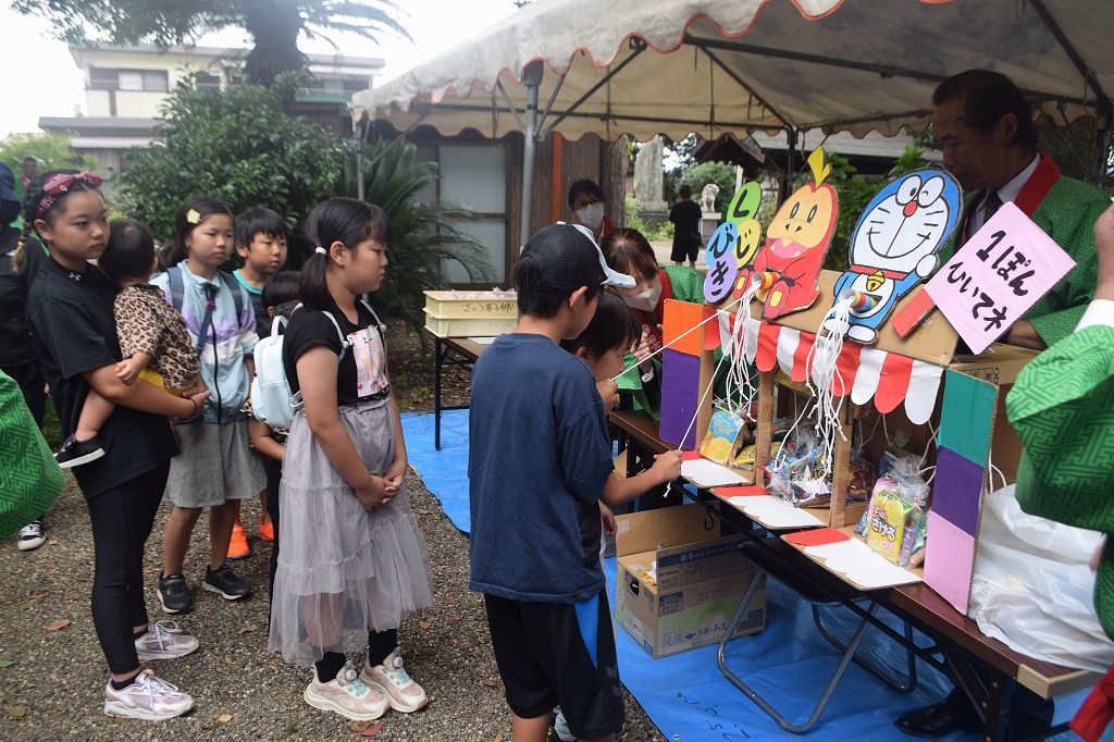 ちびっ子くじ引き大会が参集殿前で9時から始めました。ちょっとしゃれたくじ引きの箱があるなと思うと、これは前宮総代の三浦さんが作ってくれたそうです。同じ箱でも何か素晴らしいものが当たりそうな気がしてしまいます。