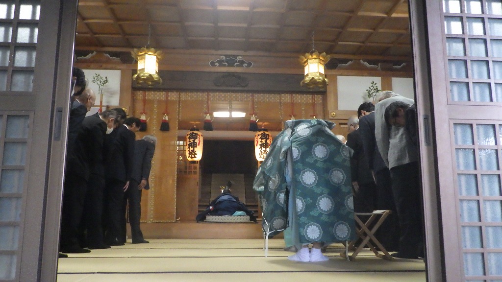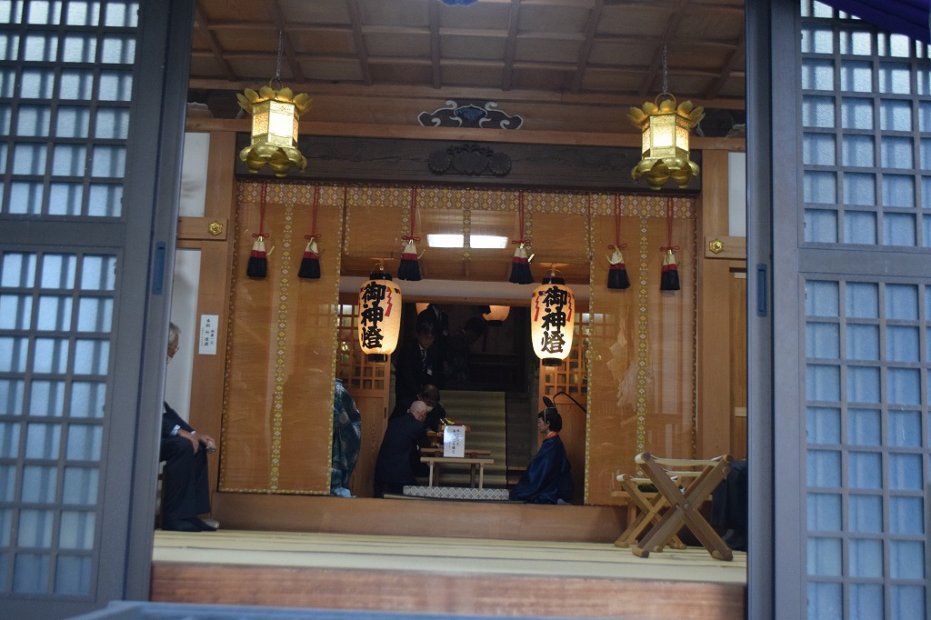 また、献饌ではこれまでは横にあるお供え物を少し横に回す程度でしたが、今回は拝殿に準備したお供え物や献上品を本殿の宮司まで献饌係数人の手で手送りされていました。これも何か重々しく味のある献饌でした。