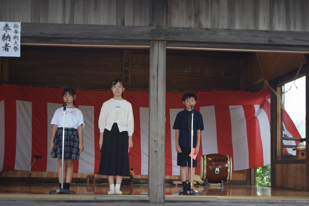 また、祭りではのぞみ園児の舞踊が急きょ中止になったため、その埋め合わせで淡窓伝光霊流全国吟詠コンクール大会で優勝した方や受賞した方達の歌謡吟や詩吟が行われました。詩吟を吟じるあの日本人の心を揺さぶるような声が神社境内に響き渡るのを聞き、これは本日の場にふさわしい催しだなと感じました。