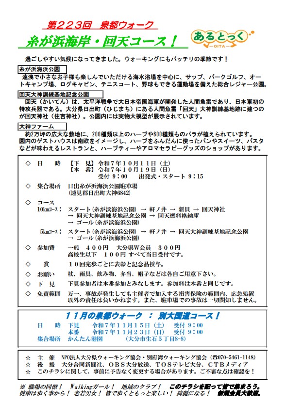 第223回泉都ウォーク<糸が浜海岸・回天コース>案内
