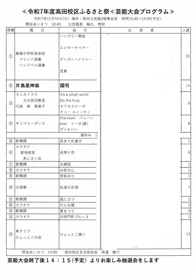 芸能大会プログラム