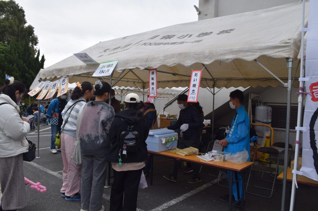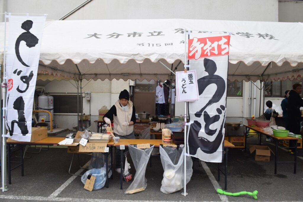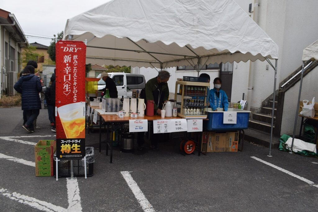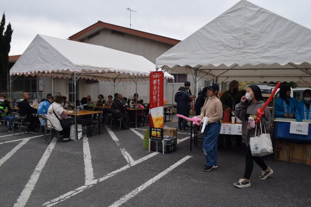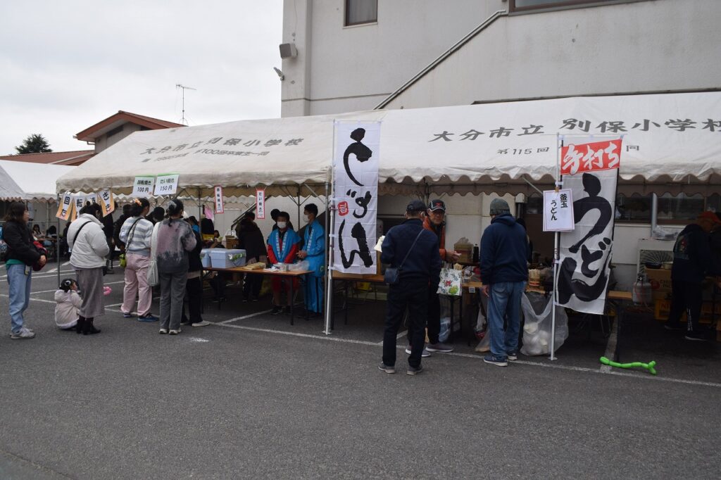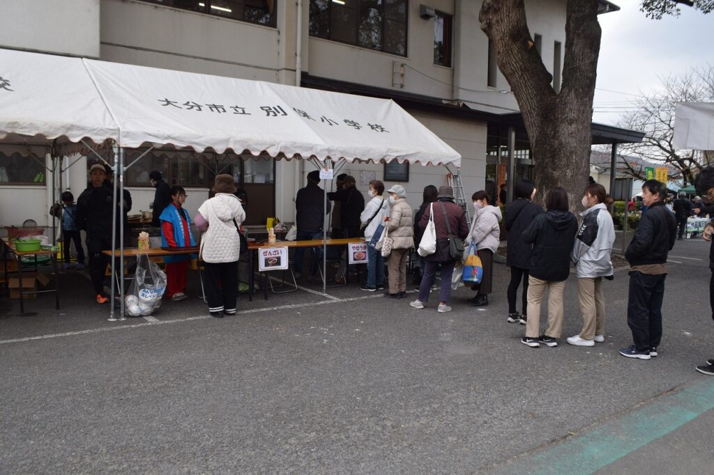 別保校区公民館前には多くの屋台が並んでいました。酒を飲めない甘党の私はぜんざいの前に並ぼうとしたのですが、長い列ができており、やむ負えず残念しました。