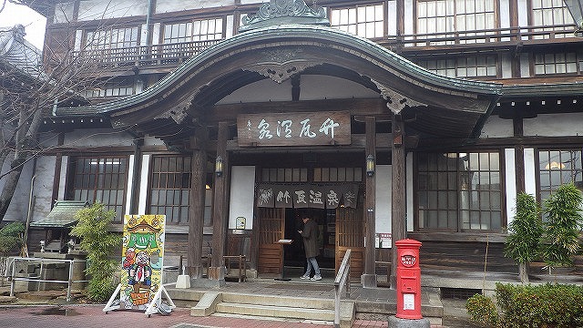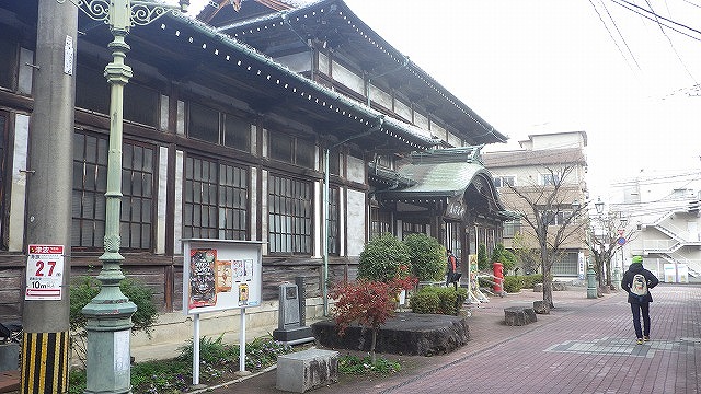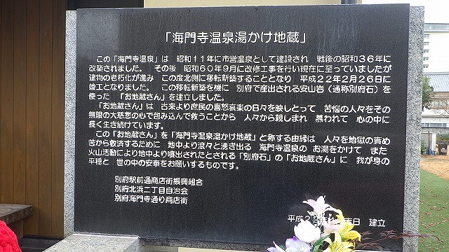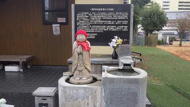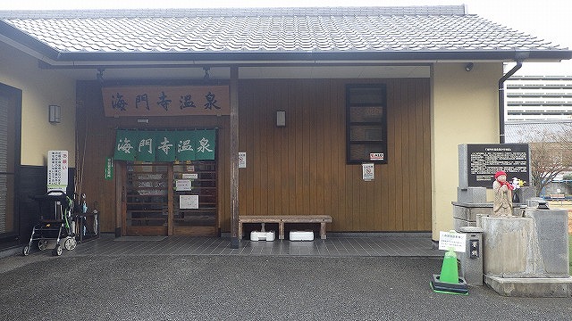 昭和11年に市営温泉になった海門寺温泉は駅から5分のところにあります。すぐ近くに海門寺があり、その寺の名前からきているようです。また、隣に広い海門寺公園があり、湯上がりにのんびりできると思います。入り口には「海門寺地蔵尊」が祀られており、お参りしてから入浴する地元の方も多いそうです。
