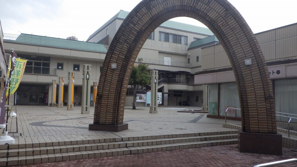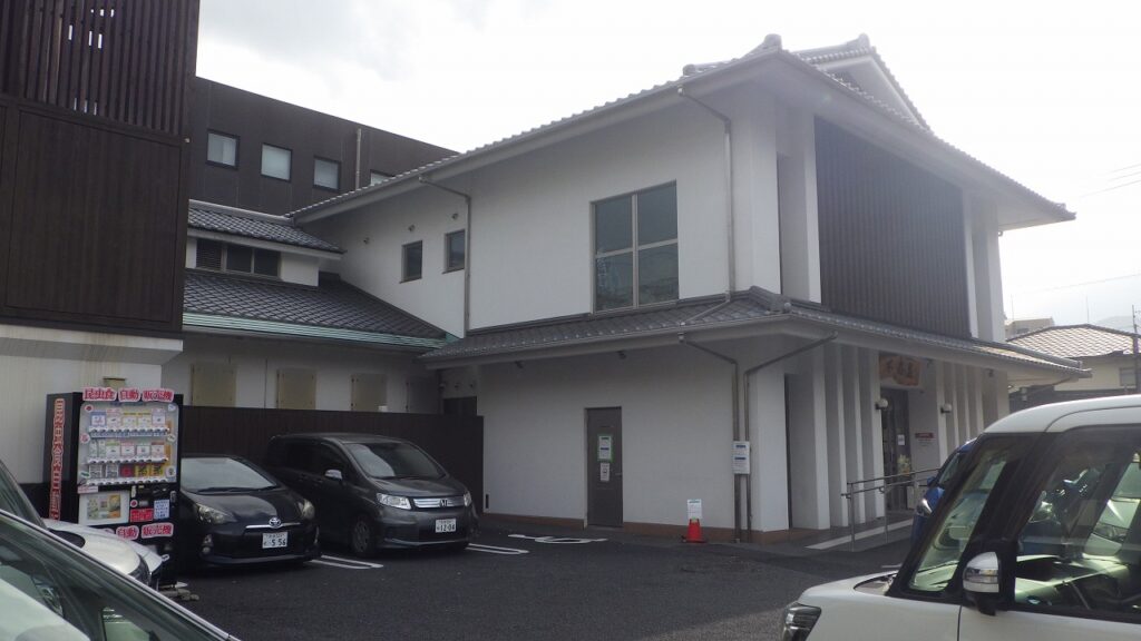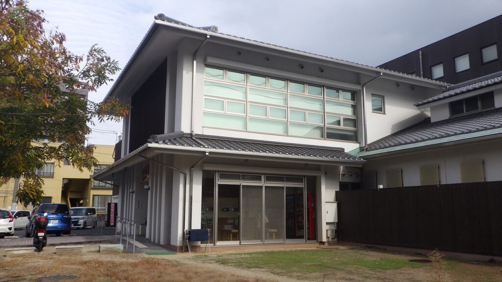 別府駅の西口側、細い路地を入ったところにあります。三角形のモダンな屋根が目印です。