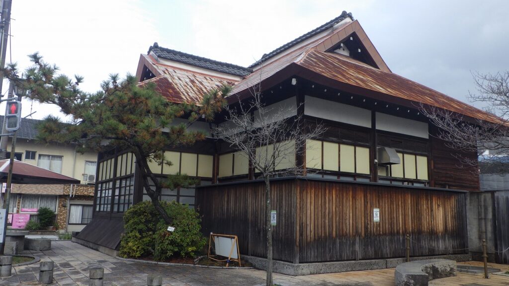 現在の建物は昭和13年(1938年)に建てられたもので、正面にある豪華な「唐破風造(からはふづくり)」の屋根が特徴的な、レトロで重厚な外観を楽しめます。