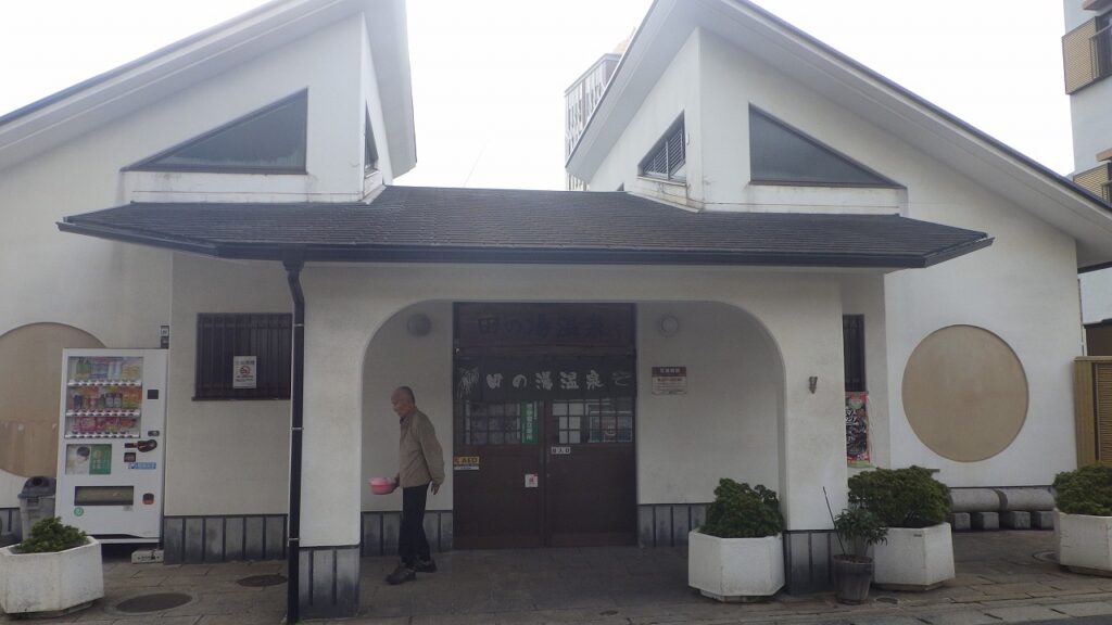 別府市営の田の湯温泉は、別府駅から徒歩約5分という非常に便利な場所にありながら、地元の生活に深く根ざした風情ある共同浴場です。江戸時代から続くと言われる歴史ある温泉です。かつては周囲が田んぼばかりで、どこからでもあぜ道を通って来られたことから「畦なし(あぜなし)の湯」とも呼ばれていました。その後、田の湯温泉と呼ばれるようになり、「そのかみは田んぼの中にありしといふ田の湯の名まへよろしかりけり(中略)派手ならぬ田の湯の付近親しきよ温泉の場気分は此所にただよう」と詠じられていることからも田の湯温泉の素朴さがうかがえます。