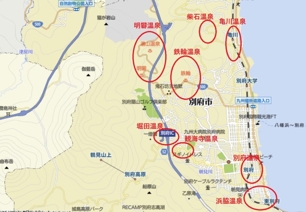 - 観海寺温泉 :杉乃井ホテルなどがある高台のエリア