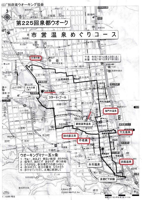 別府湾ウォーキング協会主催の「第225回泉都ウォーク 別府市内の市営温泉めぐりコース」に参加しました。入浴はありませんが、別府市街の市営温泉を見て回りました。一足早い正月の入湯を楽しんでいる気分でした。
