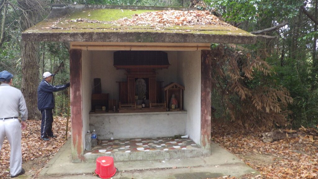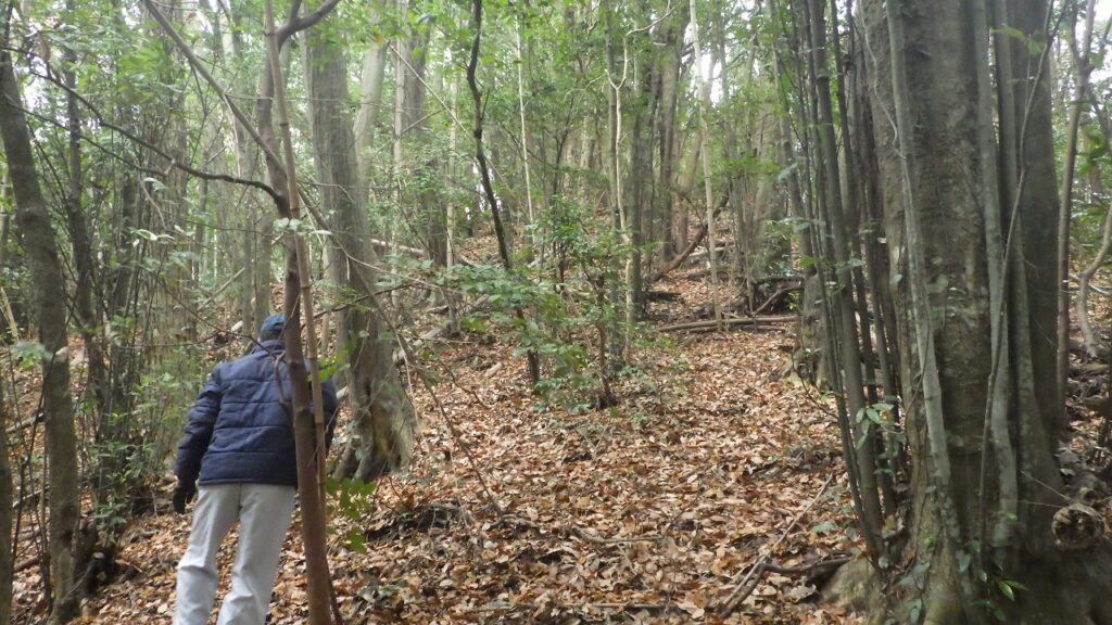 12月24日クリスマスの日、宮河内の歴史教室のもう一人と合流し三人で曇り空の中を宮河内城のあった山に登りました。