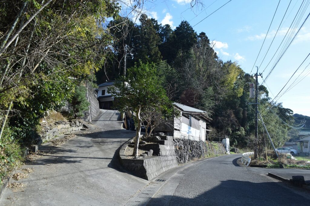 県道38号線横の旧道から民家の横を通り登っていきます。
