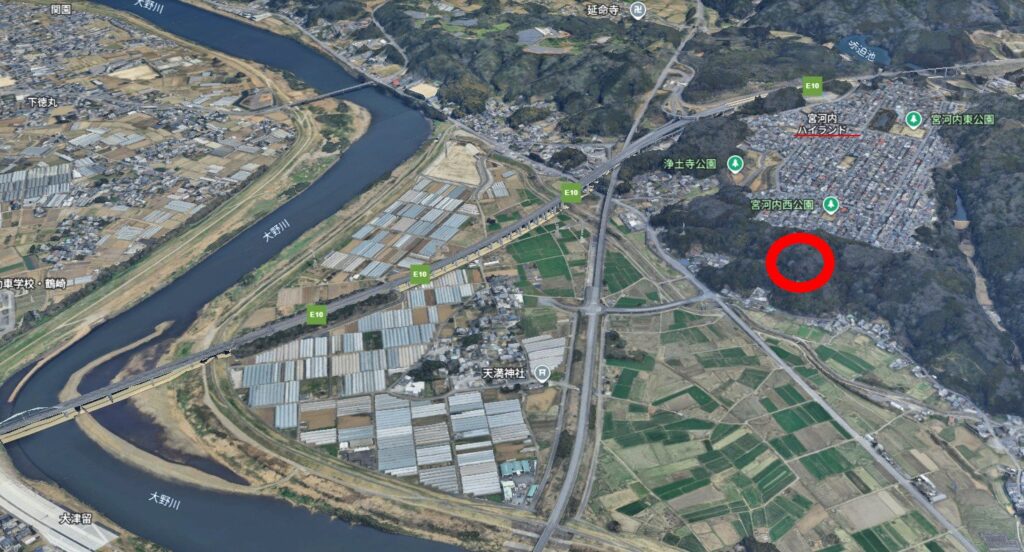 宮河内城跡の位置や状況の写真を見ていただいた後に、村上氏の寄稿を味わってください。