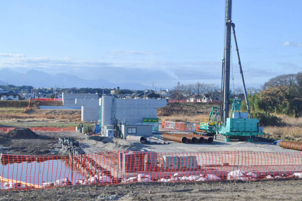 A2橋台部では橋台の基礎工事用の機械を設置していました。機械の設置が終わり次第、基礎工事が始まるのでしょう。