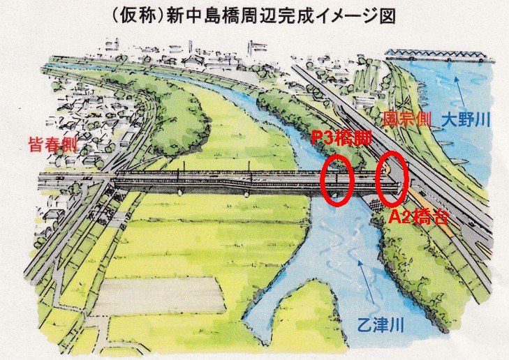 新中島橋の工事施工業者は落札していますが、現在では準備期間中のようです。近いうちに工事が始まるのではないでしょうか。