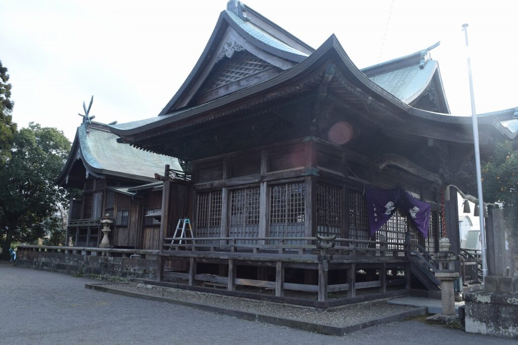 三佐は岡藩の飛地であり、参勤交代の船が発着する港町でした。藩主の中川氏も参拝し、休憩所としても使われていたため、藩からの厚い崇敬を受けていました。