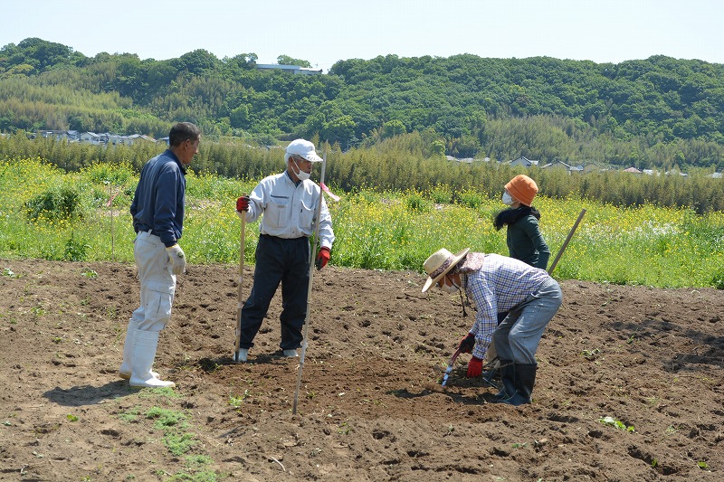 堂園地区でイモを植えていました。秋にはみんなで収穫です。これも佐藤さんが段取りをしていました。