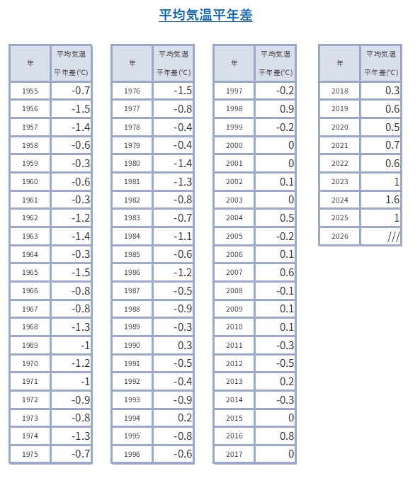 30年間の平均:直近30年間の平均値を「平年値」として使います。