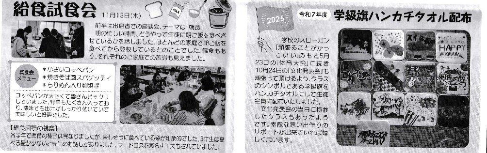P-4(その3) 給食試食会 学級旗ハンカチタオル配布