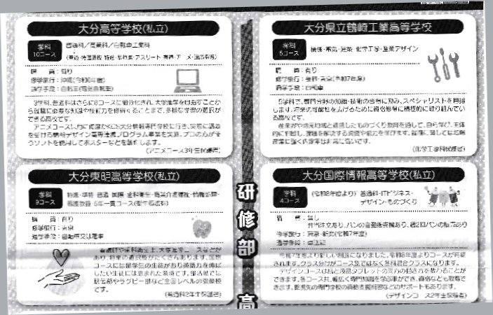 今年度2回目の高校説明会及び進路説明会が開催されました。 第1回目 (6月13日)の鶴崎工業高校・大分高校 大分鶴崎高校に続き、11月11日は大分東高校 情報科学高校 大分東明高校の先生方が来校されスライド等を使って、各高校の特色や高校生活、 卒業後の進路先等を詳しく説明していただきました。 その後、進路説明会へ移り、入試のシステムや手続き、日程、 費用等の説明をしていただきました。 参加した3年生には受験に向けて再度、 気が引き締まる有意義な時間になったのではないでしょうか。