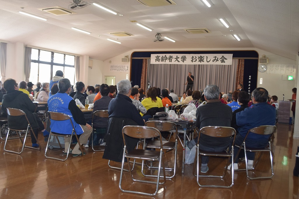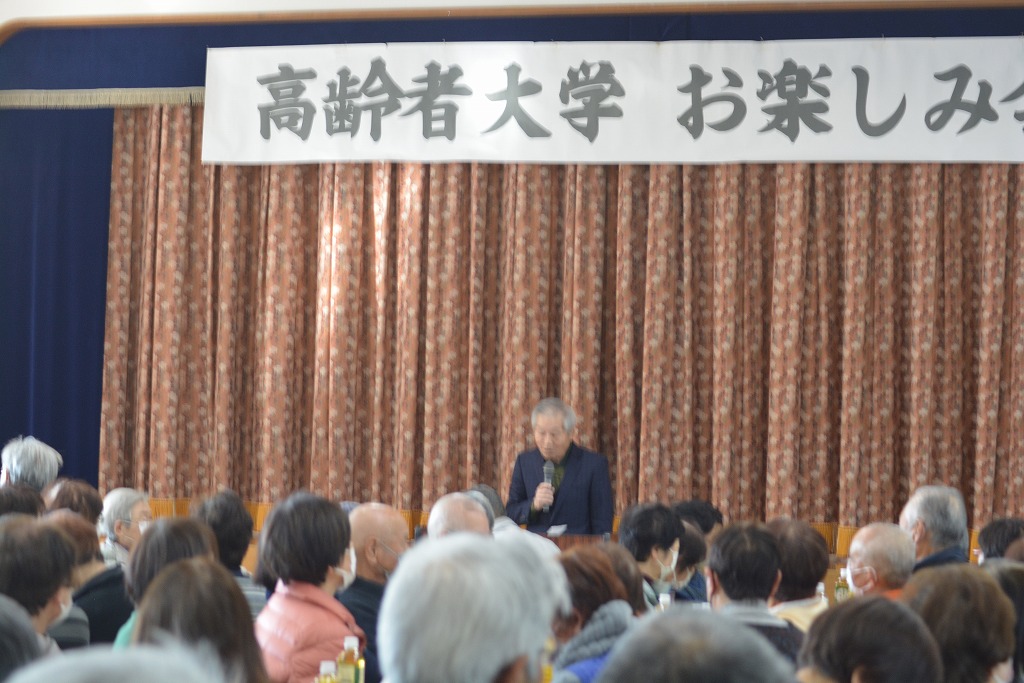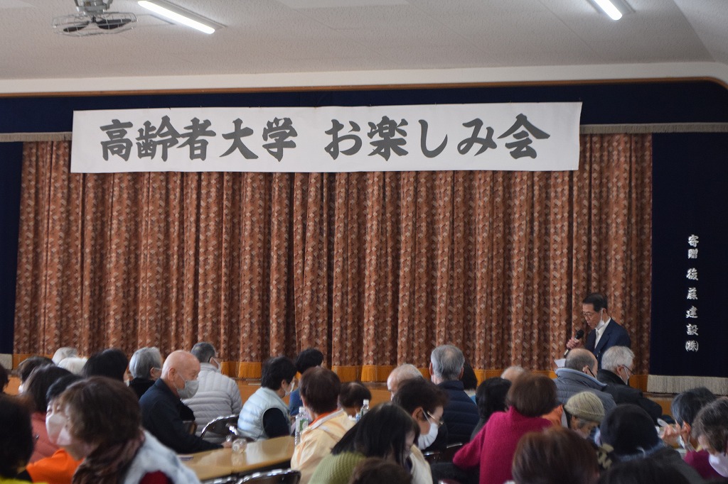 姫野社協副会長の閉会の挨拶で4時間にわたる「高齢者大学 お楽しみ会」も終了しました。