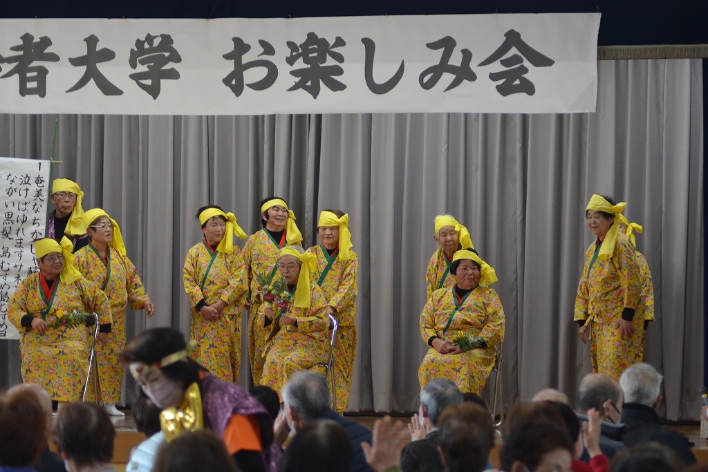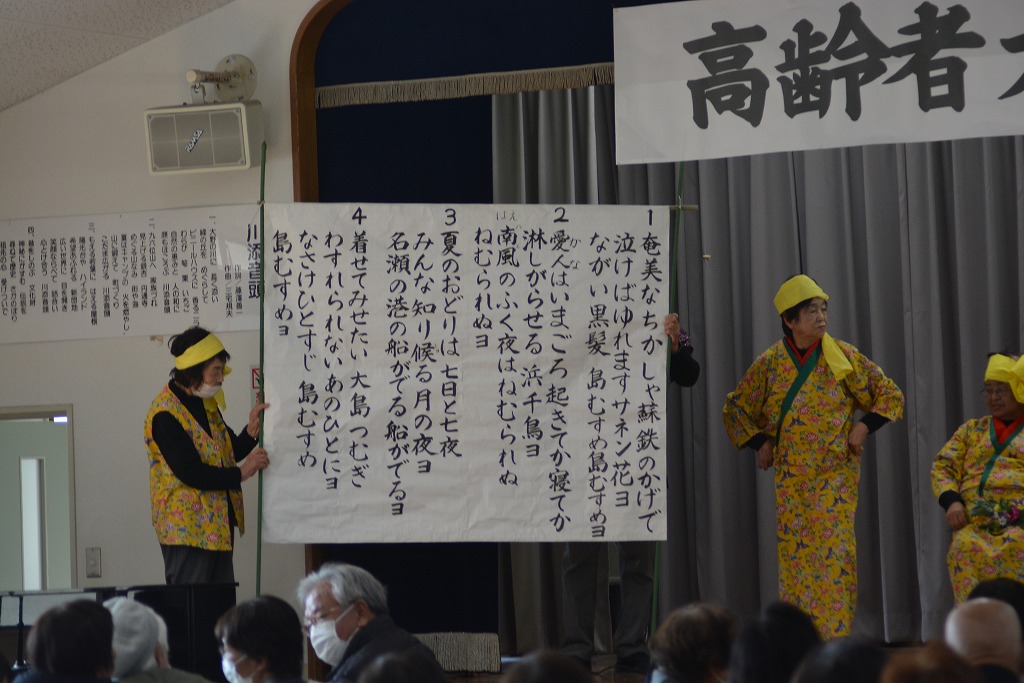 川添校区にはいろいろな活動をしている人がいるのだと感動しました。この黄色の奄美の衣装を着こみ、踊る姿は今の寒さを一気に忘れ去ってしまいます。