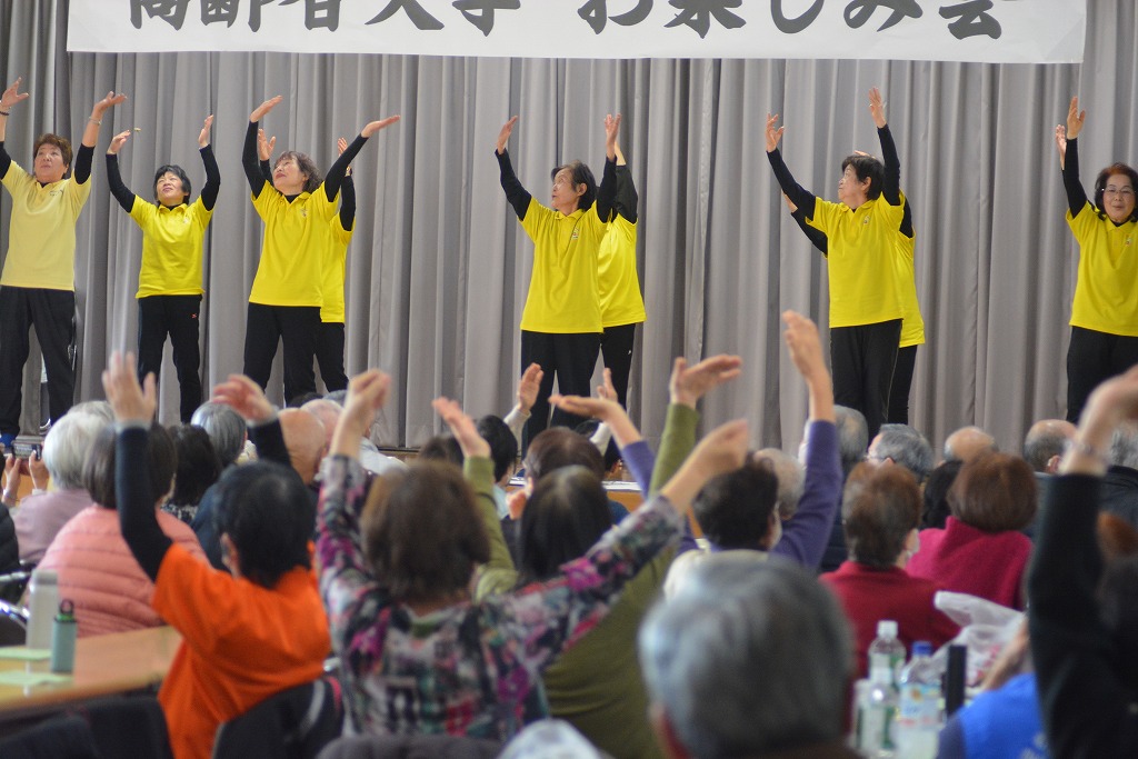 リズム体操をされている方々は高齢者のケアをされている方達で、今日の参加者にはお世話になっている方もいらっしゃるのではないでしょうか。