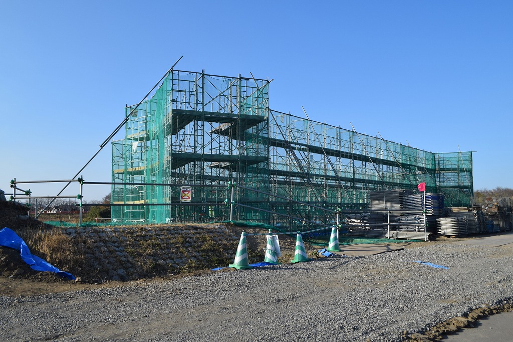 高田側はA2橋台の基礎掘削も終わり、橋台の躯体の足場が組まれています。これから、鉄筋組立、型枠、躯体コンクリートと進んでいくものと思われます。