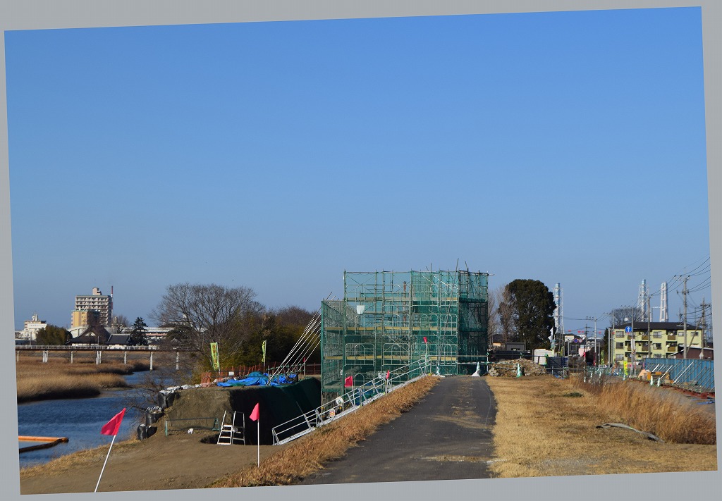 皆春側は橋脚P3の施工ヤード設置・基礎杭工事が完了しました。二月からはP3の橋脚工事(まずは基礎掘削)に入ると思います。